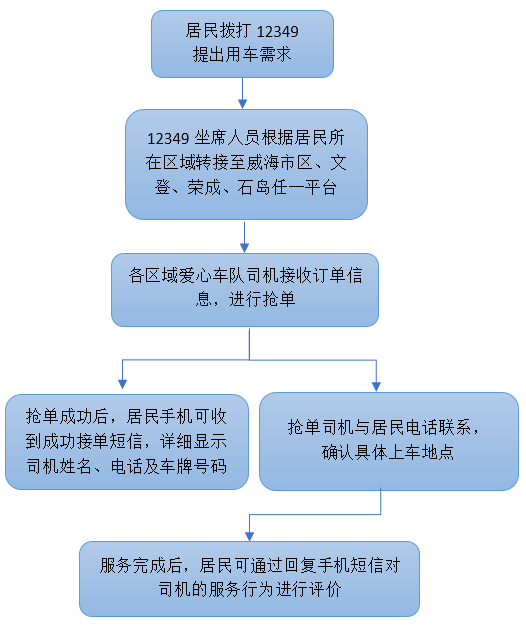 为更好地满足居民用车需求,中心建立起12349智能语音叫车系统,通过系统实现订单的自动分配,以此节省居民的等待时间,保障居民便捷出行。现“12349”爱心车队已吸纳400余名优秀出租车司机,实现了威海市区、文登、荣成、石岛的全覆盖,让居民足不出户、车到门前!出门用车,记得提前联系“12349”呀!