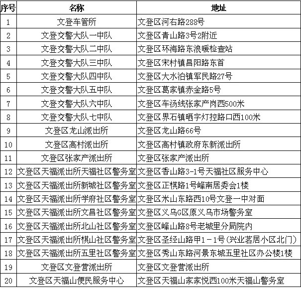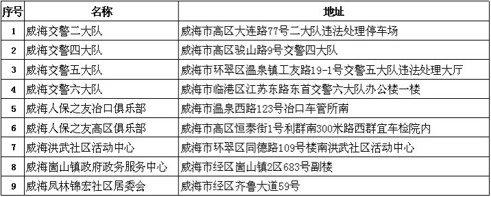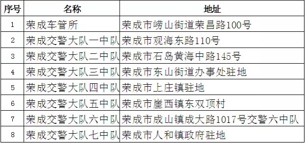 荣成市登记点8处